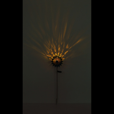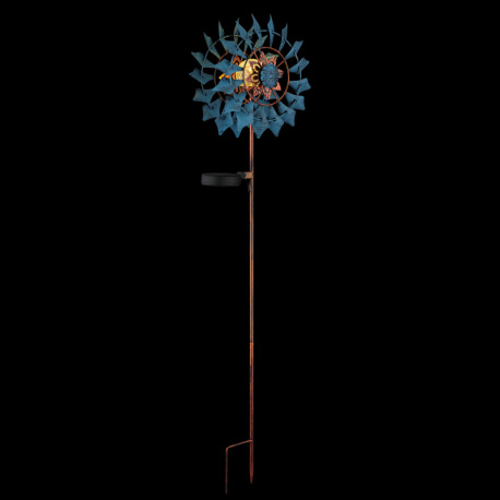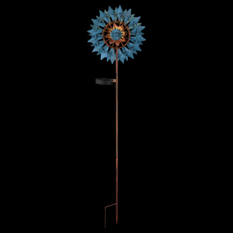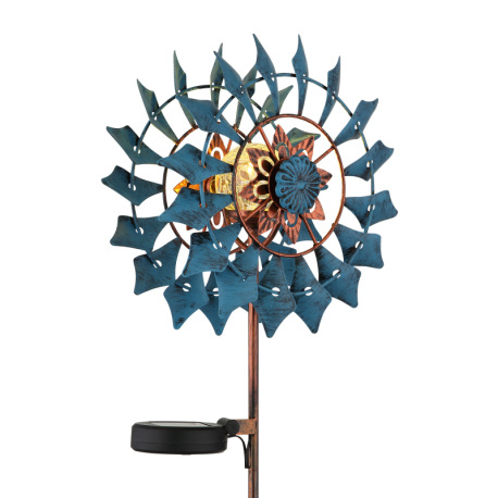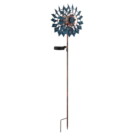 Solárne svietidlo, kov zlatej starožitnej farby, kov modrý starožitnej farby, sklenená guľa číra s e