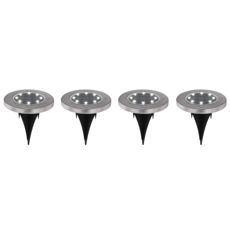 Solárne svietidlo, nerez, plast čierny a priehľadný, 4ks v balení, okrúhle, s hrotom na zapichnutie