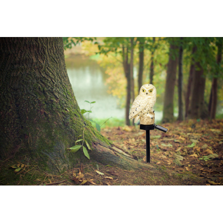 Solárne svietidlo, plast čierny, plast bielo hnedý, so sovou, IP44, vypínač, akumlátor AAA 300mAh 1,