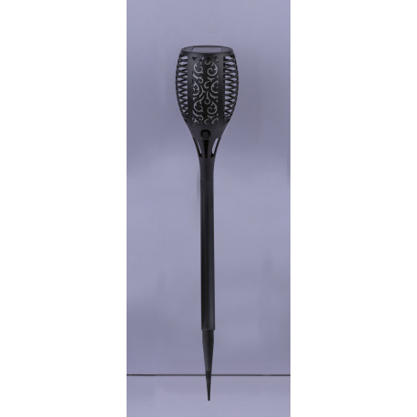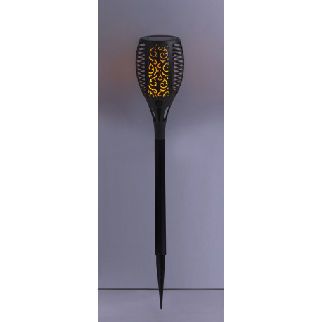 Solárne svietidlo, plast čierny, plast, fakľa, hrot do zeme, blikajúca LED, IP44, vypínač, akumuláto