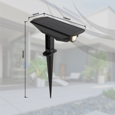 Solárne svietidlo, plast čierny, plast priehľadný, vypínač, nastaviteľné, nastaviteľný svetelný kuže