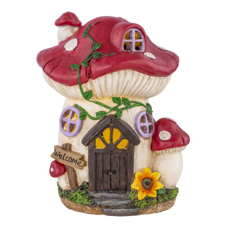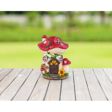 Solárne svietidlo, plast farebný, hríbový dom, IP44, vypínač, akumlátor AA 200mAh 1,2V, DxŠxV:155x12