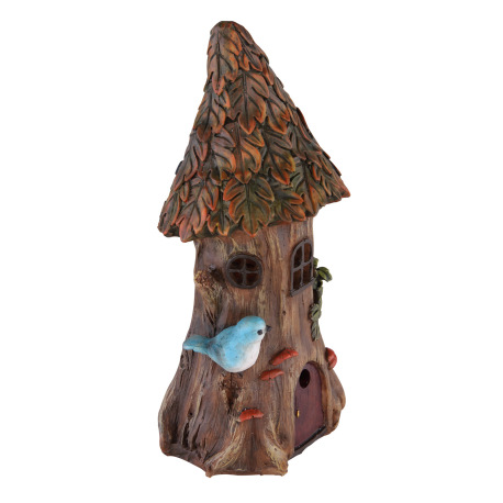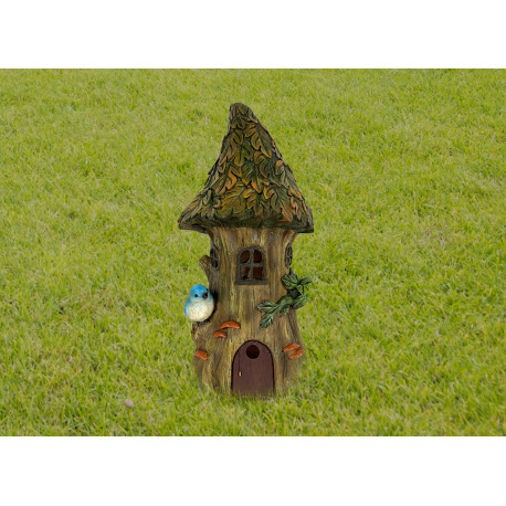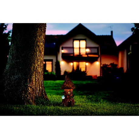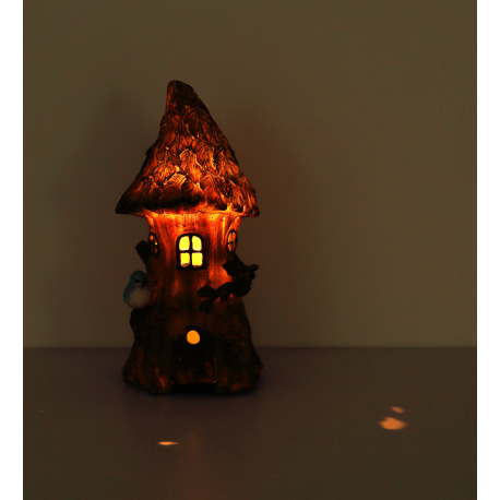 Solárne svietidlo, plast hnedý a zelený, domček z kmeňa stromu, IP44, vypínač, akumlátor V40H 40mAh