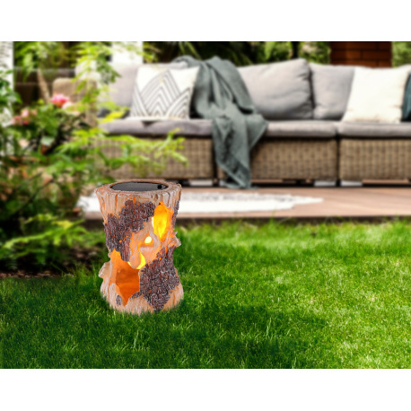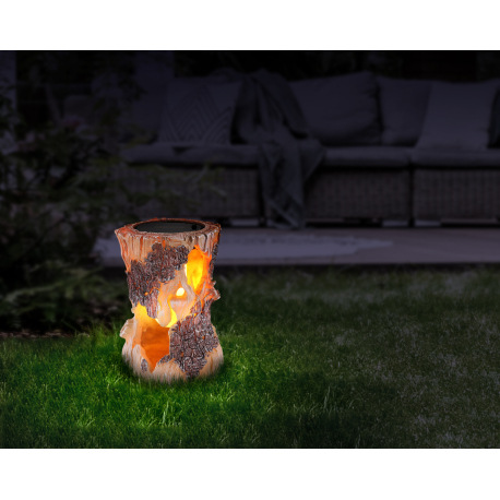 Solárne svietidlo, plast imitácia dreva, hnedý, plast biely, IP44, kmeň stromu, blikajúca LED, akumu