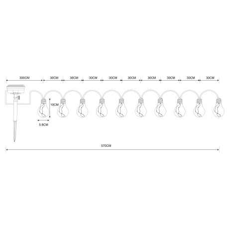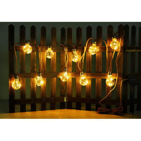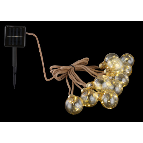 Solárne svietidlo, reťaz, plast jantár, konopné lano hnedé, 10 žiaroviek, dĺžka napájacieho vedenia