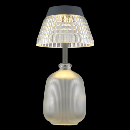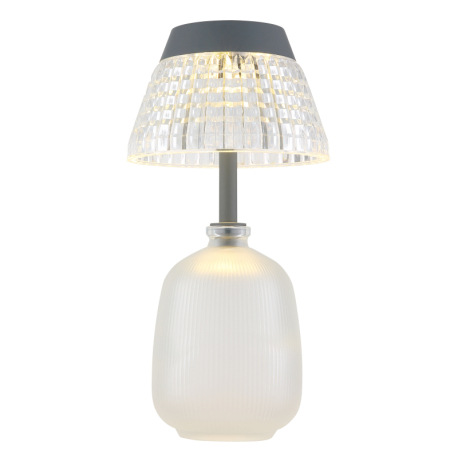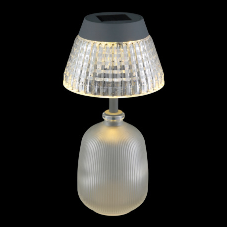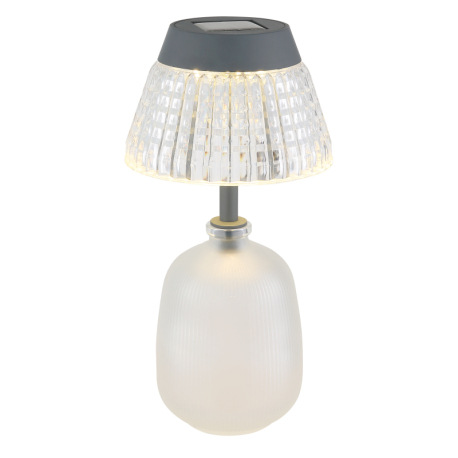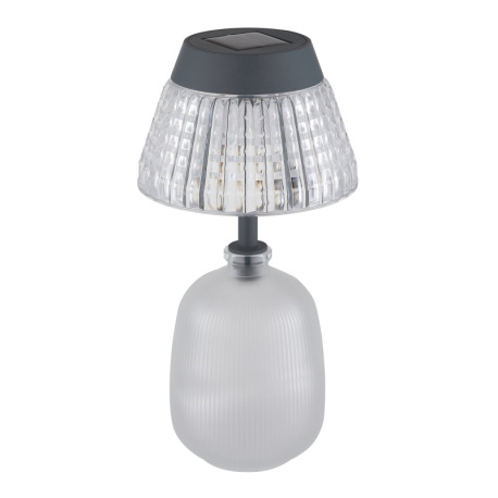 Solárne svietidlo, satinované sklo, antracitový plast, priehľadný akryl, posuvný spínač, batéria AAA