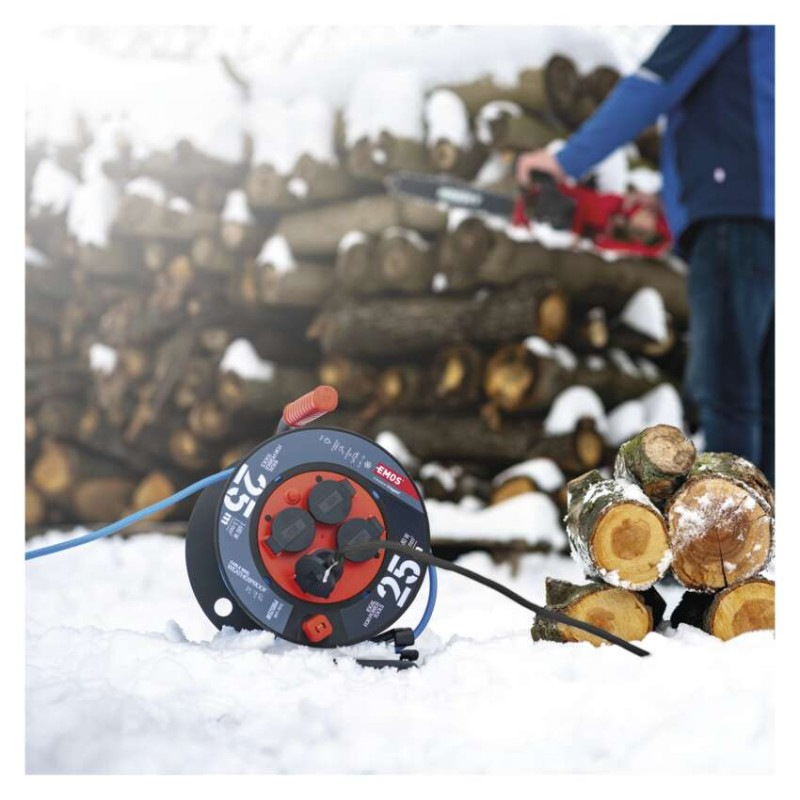 Špeciálny predlžovací kábel na bubne 25 m / 4 zásuvky / PVC/ 230 V / 1,5 mm2
