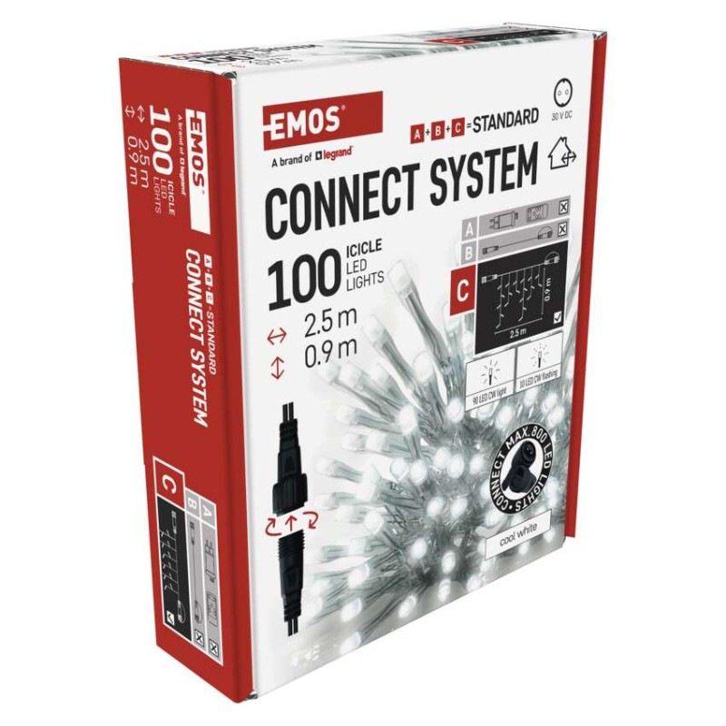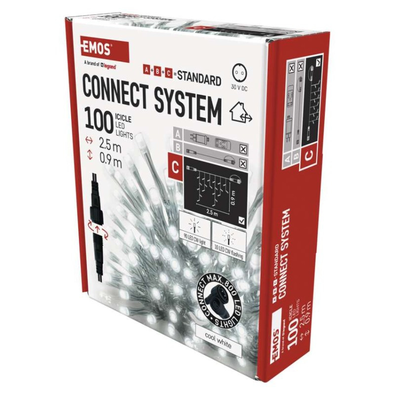 Standard LED spoj. reťaz blikajúca – cencúle, 2,5 m, vonkajšia, studená biela