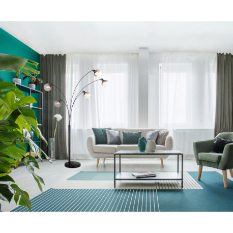 Stojacia lampa kov čierny matný, mramor čierny, sklo dymové, kábel PVC čierny, vypínač, DxŠxV: 980x1