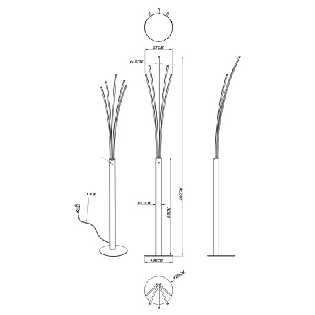 Stojacia lampa kov čierny matný, plast biely, biela, stmievateľná, dotykový stmievač, DxŠxV: 560x600