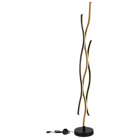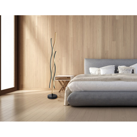 Stojacia lampa kov čierny matný, plast biely, hliník čierny matný, hliník imitácia dreva, kábel PVC