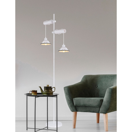 Stojanové svietidlo, kov biely a čierny, drevo biele, keramika biela a čierna, výškovo nastaviteľné,