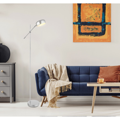 Stojanové svietidlo, kov chróm, plast satinovaný, nastaviteľné pomocou kĺbu, kábel 1,8m, vypínač, Dx