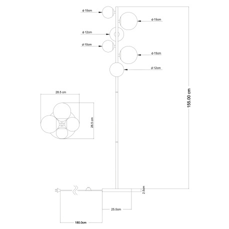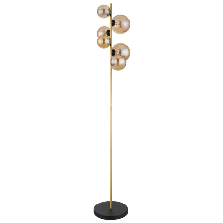 Stojanové svietidlo, kov čierny, kov mosadz, sklo jantárové, nožný vypínač , DxŠxV:285x265x1550mm, d