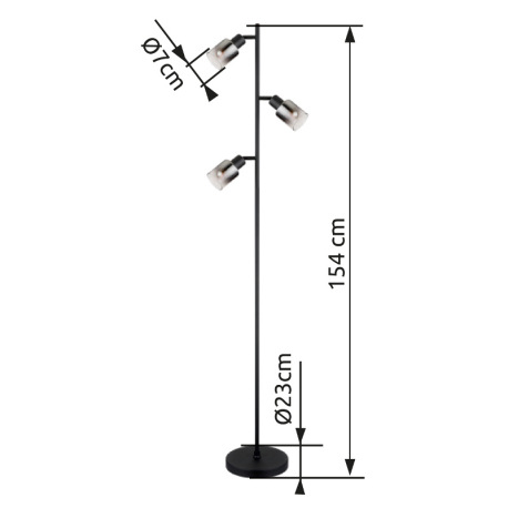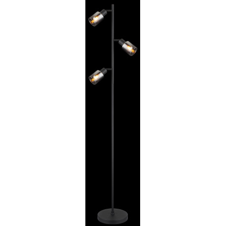 Stojanové svietidlo, kov čierny matný, dymové sklo s prechodom do priehľadného skla, kábel PVC čiern