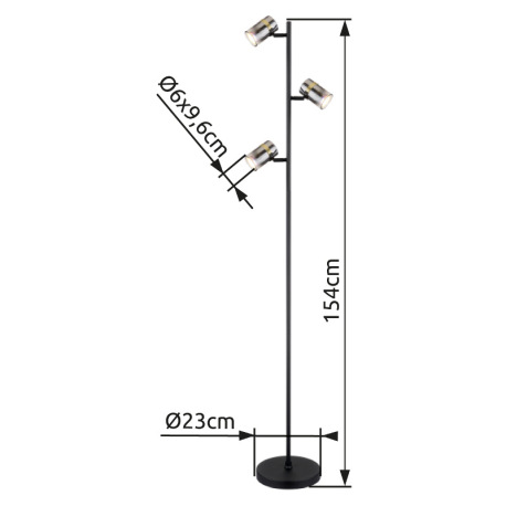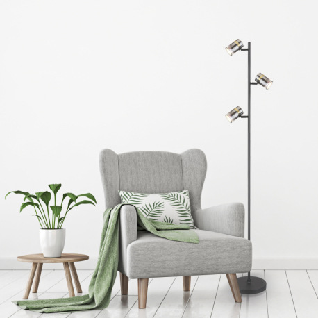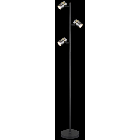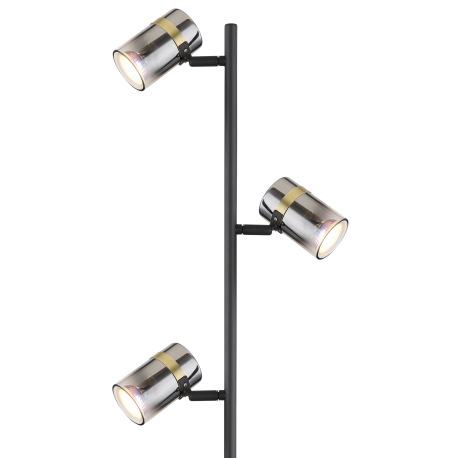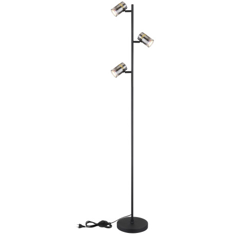 Stojanové svietidlo, kov čierny matný, dymové sklo s prechodom do priehľadného skla, kov mosadz, káb