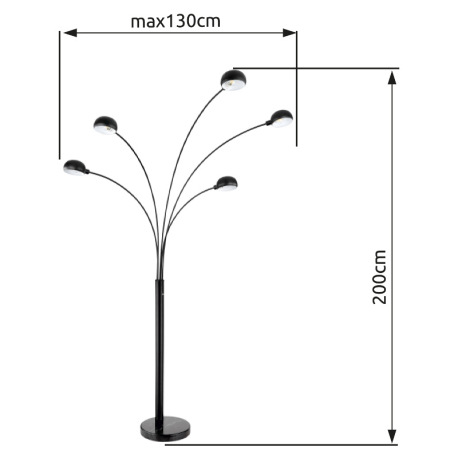 Stojanové svietidlo, kov čierny, mramor čierny, DxŠxV:1300x1200x2000mm, dľžka kábla 1800mm, bez žiar