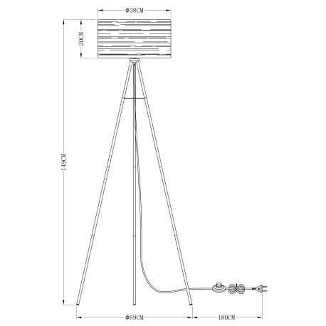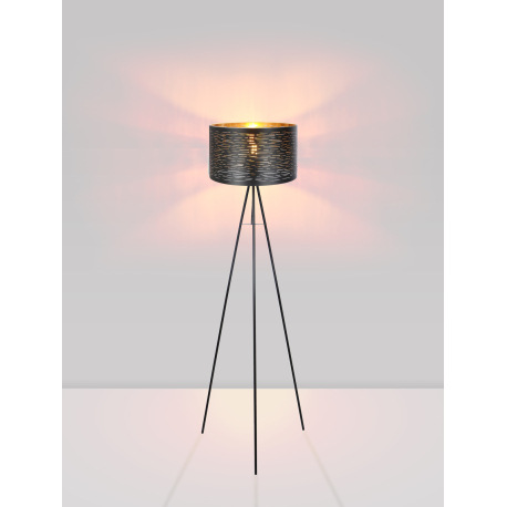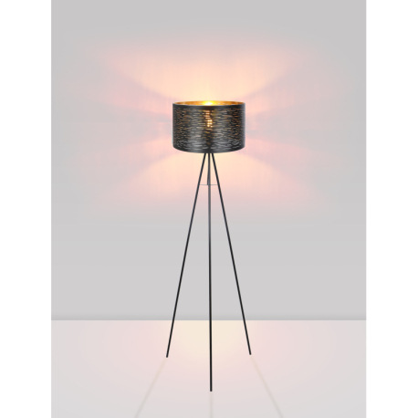 Stojanové svietidlo, kov čierny, plast čierny a zlatý, priemer tienidla: 38 cm, kábel 1,8 m, vypínač