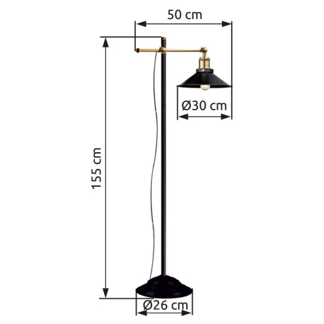 Stojanové svietidlo, kov čierny, stará mosadz, nastaviteľné, vypínač, DxŠxV:500x300x1550, bez žiarov
