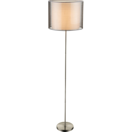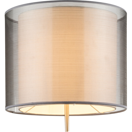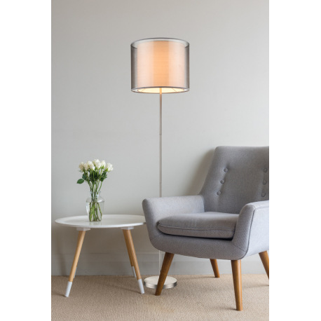 Stojanové svietidlo, kov nikel matný, plast, textil sivý, výška tienidla 31 cm, vypínač, Ø 400, V:16