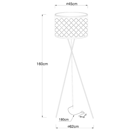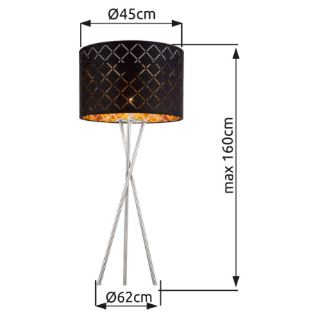 Stojanové svietidlo, kov nikel matný, textil čierny a zlatý, tienidlo s ozdobným dierovaním, kábel 1