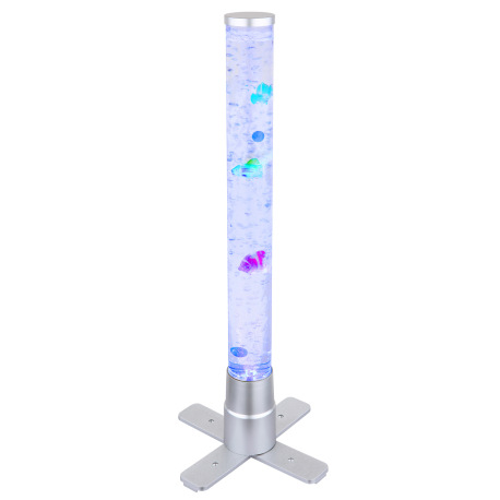 Stojanové svietidlo, plast sivý a priehľadný, čierny PVC kábel, s vypínačom na kábli, RGB zmena farb