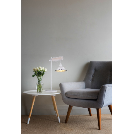 Stolová lampa, biely kov, biele drevo, keramika biela a čierna, výškovo nastaviteľné, vypínač, DxŠxV