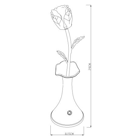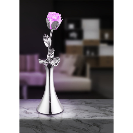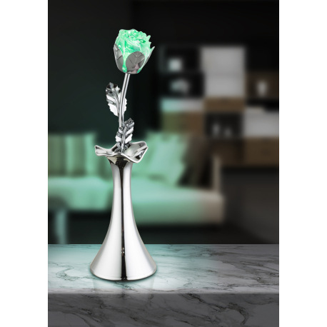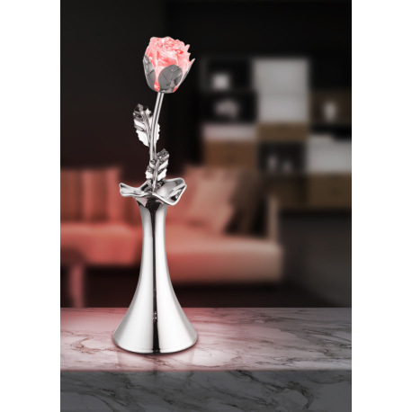 Stolová lampa, chróm, akryl, váza s ružičkou, vypínač, zmena farby svetla, bez batérií 3xAAA 1.5V, Ø