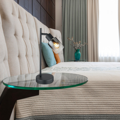 Stolová lampa, kov čierny matný, dymové sklo s prechodom do priehľadného skla, kábel PVC čierny, kol