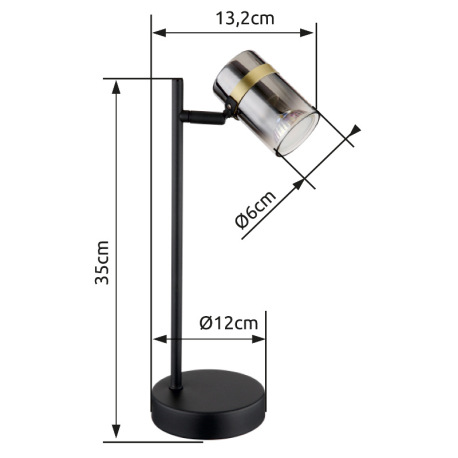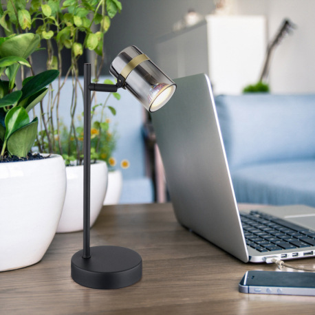 Stolová lampa, kov čierny matný, dymové sklo s prechodom do priehľadného skla, kov mosadzný matný, k