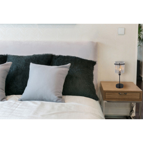 Stolová lampa, kov čierny matný, sklenené tyčinky dymovej farby, kábel PVC čierny, kolískový vypínač