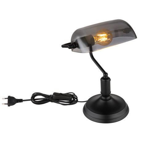 Stolová lampa, kov čierny matný, sklo dymové, kábel PVC čierny, kolískový vypínač na kábli, DxŠxV: 2