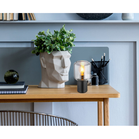 Stolová lampa, kov čierny matný, sklo dymové, textilný kábel čierny, kolískový vypínač na kábli, ø:1