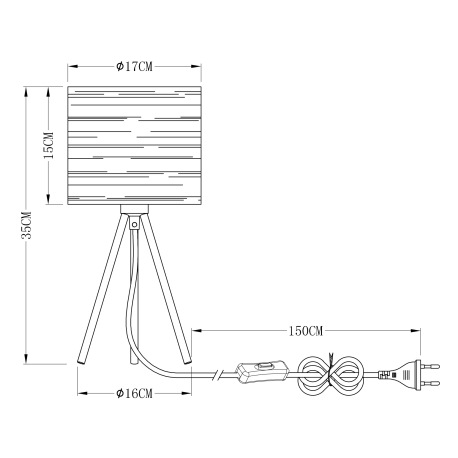 Stolová lampa, kov čierny, plast čierny a zlatý, vypínač, Ø170, V:350, bez žiarovky 1xE14, max. 25W