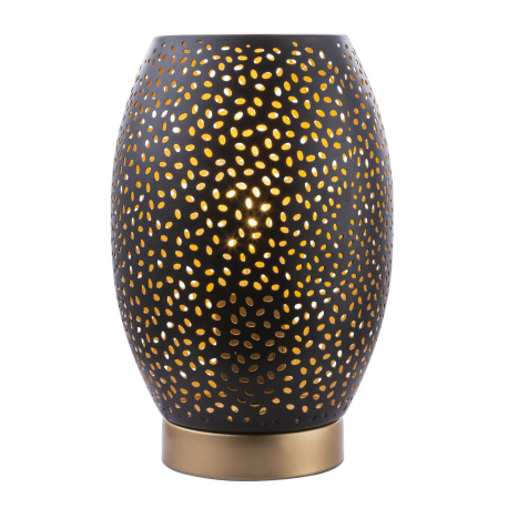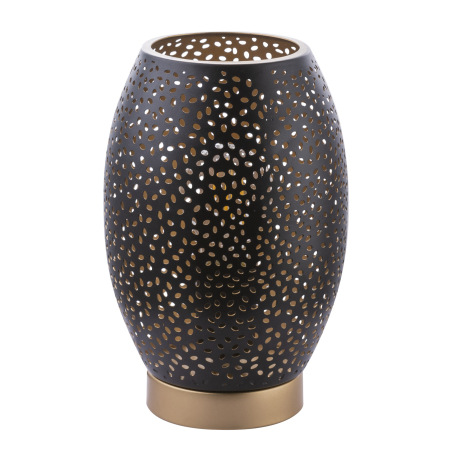 Stolová lampa, kov zlatý, kov čierny, matný zlatý, kábel 1,5m, tienidlo s dekoratívnym dierovaním, v