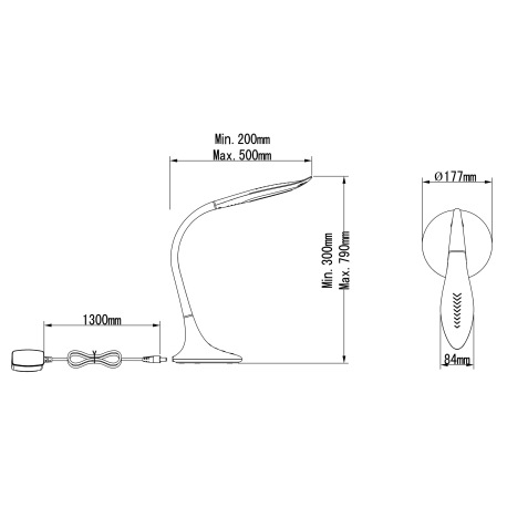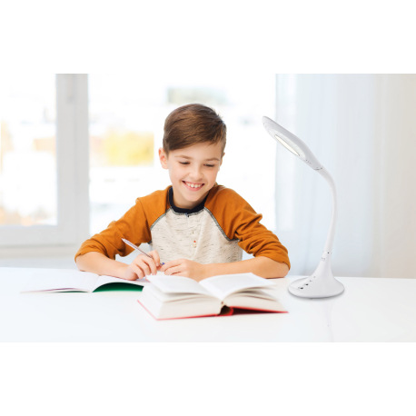 Stolová lampa, plast, chróm, biely, hliník, flexo, dotykový vypínač ON / OFF, dotykový stmievač, DxŠ