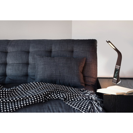 Stolová lampa, plast, šedá, chróm, s hodinami a budíkom, flexo, zmena farby svetla, CCT 3000-4500-58