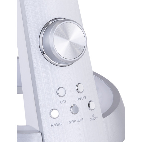 Stolová lampa, plast strieborný a biely, flexo, USB nabíjanie, nočné svetlo RGB, stmievateľné, menič