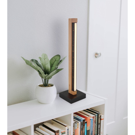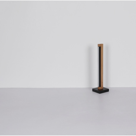 Stolové svietidlo, kov čierny, drevo tmavohnedé, hliník čierny matný, plast biely, kábel PVC čierny,