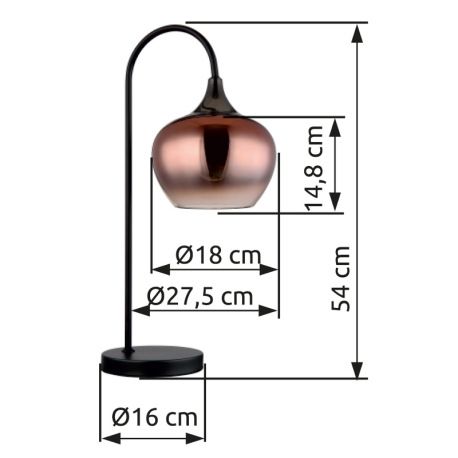 Stolové svietidlo, kov čierny, kov čierny chróm, sklo medenej farby, priehľadné, textilný kábel čier