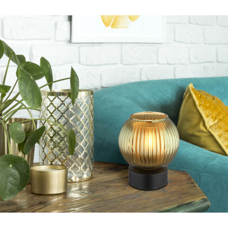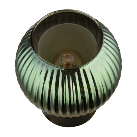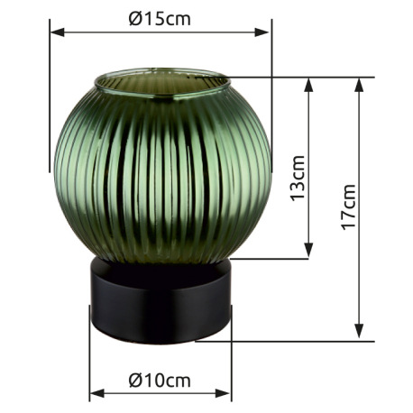 Stolové svietidlo, kov čierny matný, sklenená guľa zelená, vnútorné sklo biele, kábel PVC čierny, ko