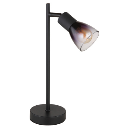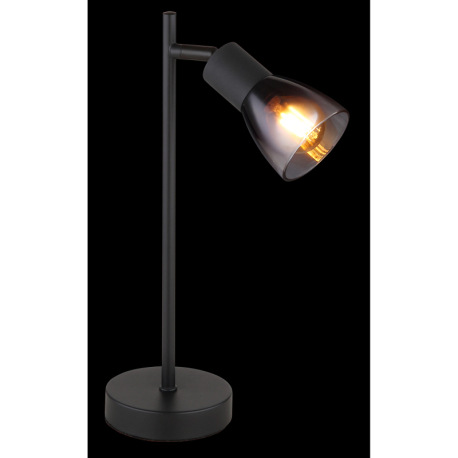 Stolové svietidlo, kov čierny matný, sklo dymové a priehľadné, kábel PVC čierny, kolískový vypínač n