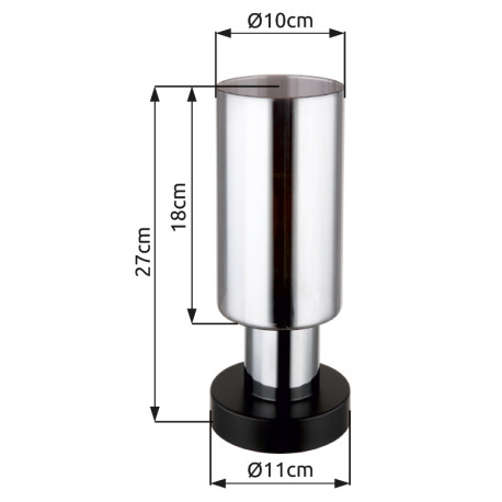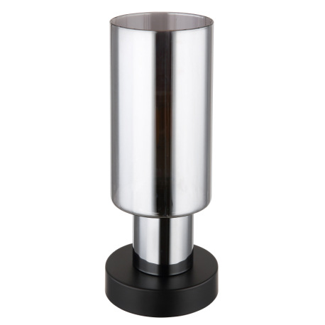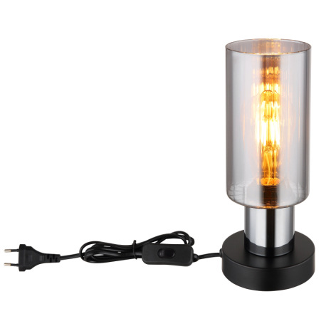 Stolové svietidlo, kov čierny, sklo dymovej farby, kábel PVC čierny, kolískový vypínač na kábli, ø: