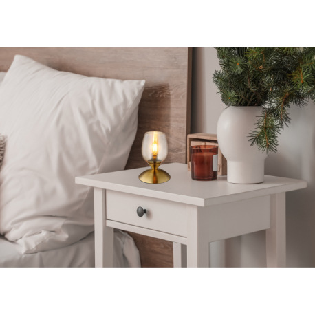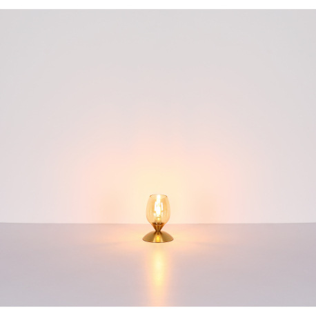 Stolové svietidlo, kov mosadz, sklo jantárové, kábel PVC čierny, dotykové zapínanie/vypínanie, ø: 12