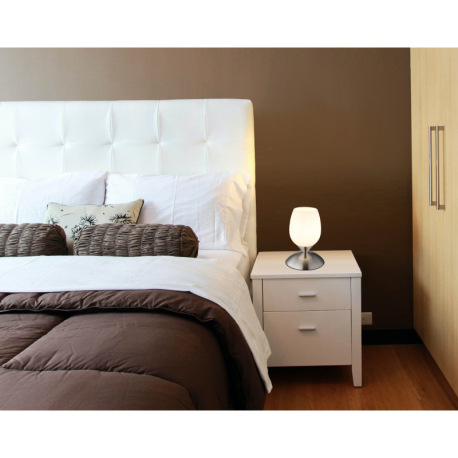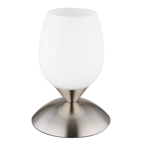 Stolové svietidlo, kov nikel matný, sklo biele, kábel PVC čierny, dotykové zapínanie/vypínanie, ø: 1