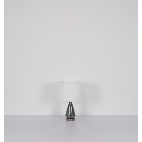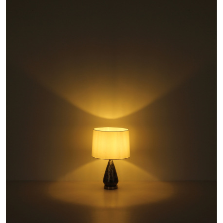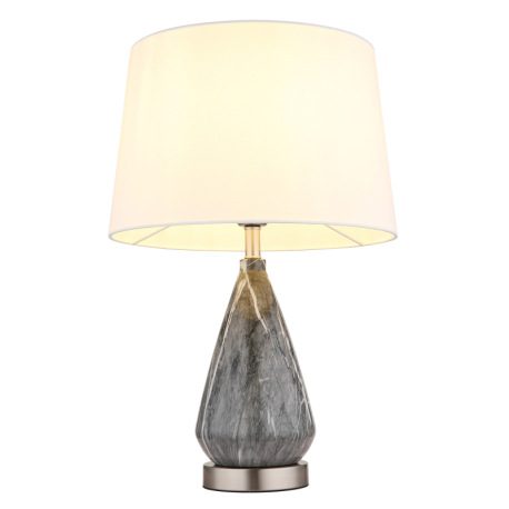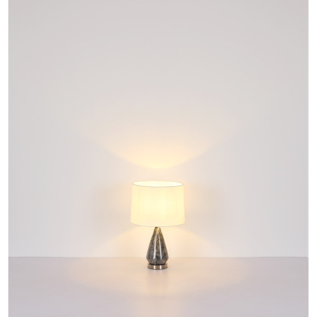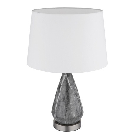 Stolové svietidlo, kov nikel, textil biely, kábel textil čierny, kolískový vypínač na kábli, kovový