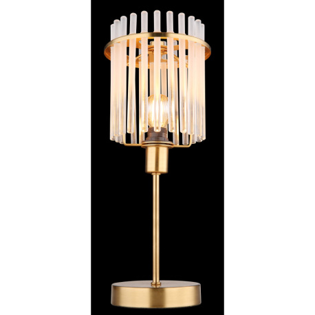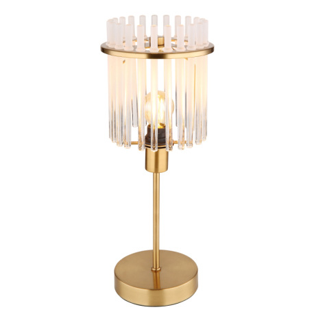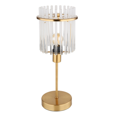 Stolové svietidlo, kov zlatej farby, sklenené tyče biele, priehľadné, kábel PVC čierny, kolískový vy