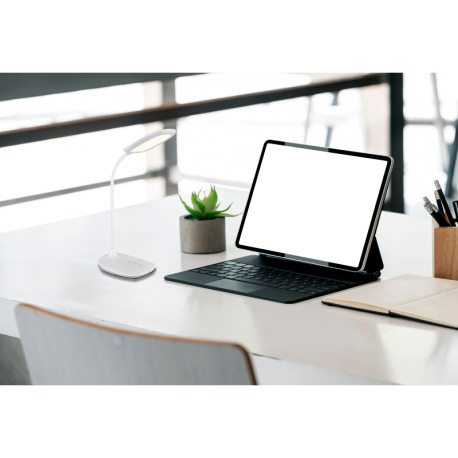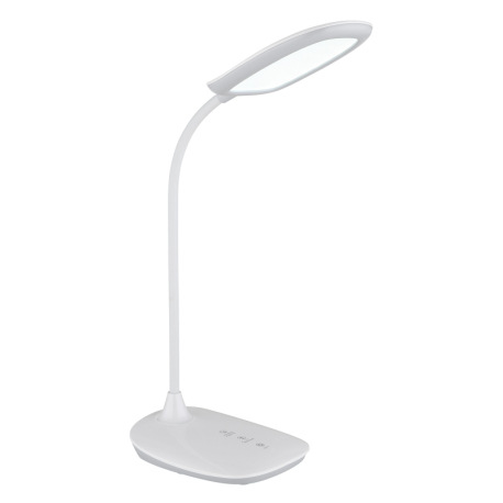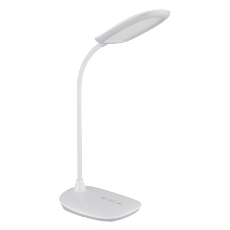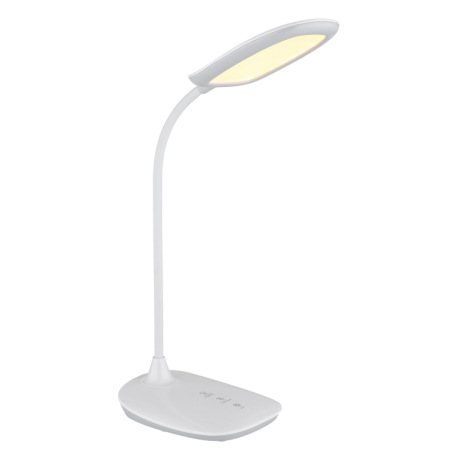 Stolové svietidlo, plast biely a satin., matný biely silikón, dotykové zapnutie/vypnutie/plynulé stm