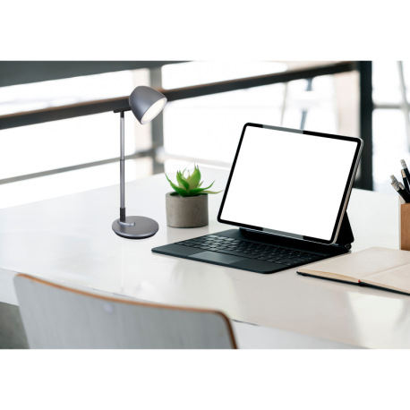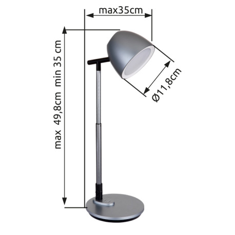 Stolové svietidlo, tmavosivý hliník a plast, plast čierny a biely, plynulá regulácia dotykového stmi