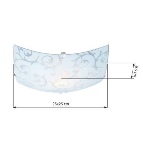 Stropné svietidlo, biela, satinované sklo, DxŠxV: 250x250x65, bez žiarovky 1xE27 ILLU, max. 60W 230V